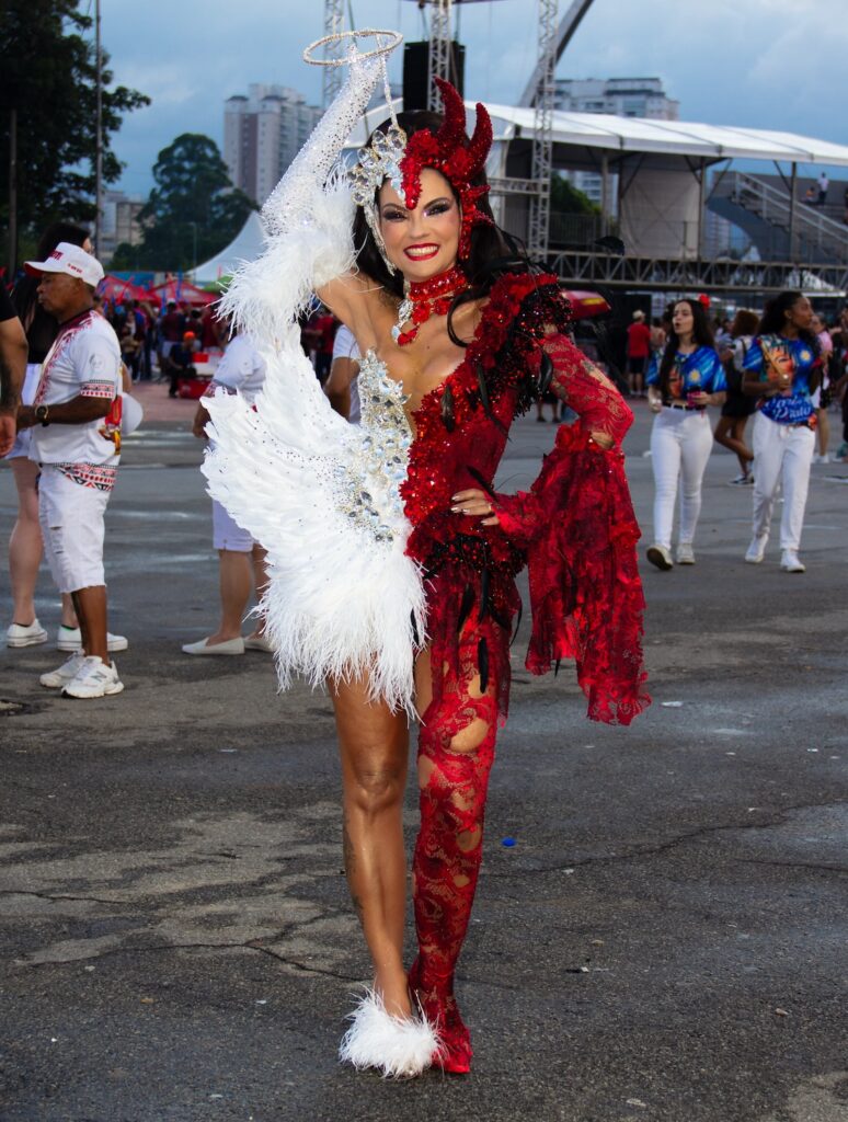 Na noite deste último domingo, 25 de janeiro, durante o segundo e último ensaio técnico da agremiação no Sambódromo do Anhembi, a diva confirmou esse protagonismo ao surgir com um figurino absolutamente impactante, que representava com elegância e força simbólica a dualidade entre o bem e o mal, tema central do enredo “Anti-Herói Brasil”, que a Tucuruvi apresentará no próximo dia 15 de fevereiro na passarela do samba.