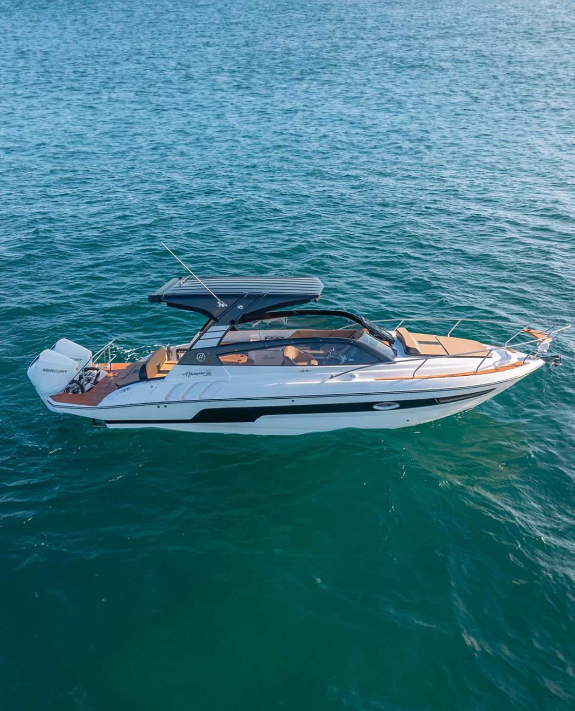 Durante o evento, foram apresentados os modelos Hanover 305 e Hanover 387, embarcações de perfil esportivo que priorizam navegação estável, bom desempenho e aproveitamento das áreas externas. A Hanover 305 é voltada ao uso diurno e à convivência a bordo, enquanto a Hanover 387 amplia o conforto com maior autonomia e soluções pensadas para permanências mais longas.