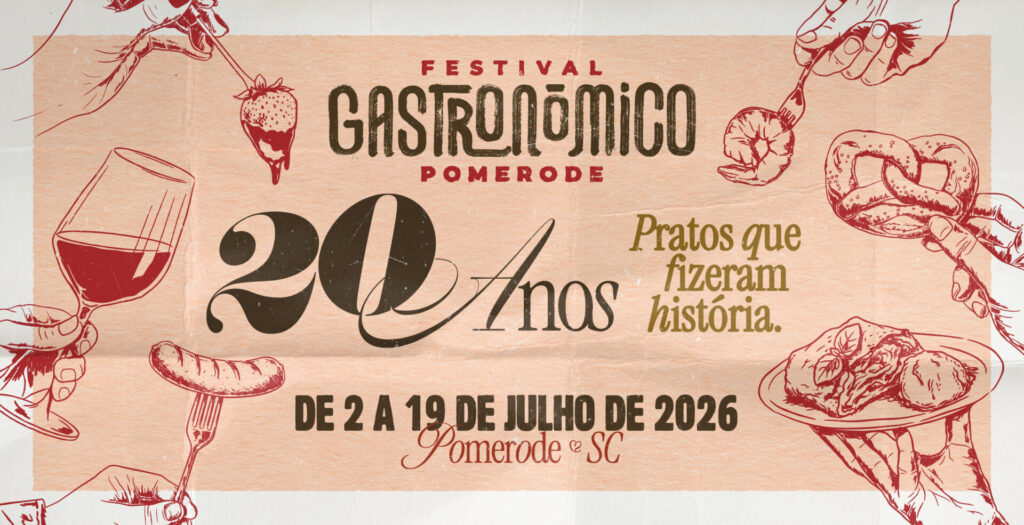 Outras novidades, como o cardápio completo, a programação e detalhes da organização do Festival Gastronômico de Pomerode 2026, serão divulgadas nas próximas semanas.